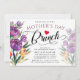 Elegant floral Mother's Day brunch, luncheon or dinner invitations feature a purple watercolor floral borders and modern script ''mothers day brunch''. Customize these floral invitations with your Mother's Day brunch or party details in black block lettering.