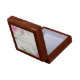 This product is made with beautiful mahogany wood, the inside is lined with white satin. The hinges are very sturdy and keeps a tight close on the box. The pattern tile is wonderful It's truly is an exquisite product. This is a gift for anyone and for any occasion. A fine wooden piece to display on your furniture anywhere in your home. The printing accented the design on the box very well. Very pleased with the Font.