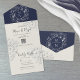 Elegant Floral Navy and Silver Wedding All In One Invitation