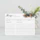 Elegant Floral Navy Blue Terracotta Brown Autumn Fall Bridal Shower Recipe Card