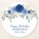 Elegant Floral Navy Blue Floral Birthday Party Round Paper Coaster
