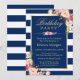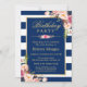 Elegant Floral Navy Blue Stripes Birthday Party Invitation