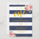Elegant Floral Navy White Stripes Birthday Party Invitation