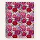 Red Roses, pink peonies, and purple lilacs on a white background create a beautiful spiral notebook with a vintage look.