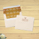 Sophisticated yet simple wedding envelope decorated with Chrysantemum flower design on light terracotta background.