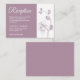 This elegant and minimalist wedding reception card features a beautiful and delicate dusty purple orchids line drawing design, over a classy white background on the right side. Easily edit the template fields to add your reception information in a modern and simple white font over a dusty purple background on the left side of the card.