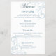 Elegant Floral Pale Light Blue Wedding Menu Flyer