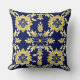 Elegant Floral Pattern in Gold and Blue Throw Pillow