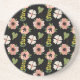Elegant Floral Pattern on Black | Chic Botanical Coaster