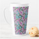 Elegant Floral Pattern Pink Purple on Black Background Latte Mug