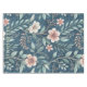 A sophisticated floral pattern tablecloth featuring pink, peach, and cream blossoms with lush green and teal foliage, set against a rich navy background with a subtle textured finish. The intertwined design creates an organic, flowing layout with added charm from small berry-like clusters. Perfect for classic, romantic, and vintage-inspired themes.