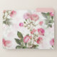 These decorative file folders have elegant floral patterns of pink roses and flowers with green leaves.