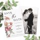 Elegant Floral Script Photo Wedding Save The Date - Vintage chic bouquet. Announce your special day in style with this charming save-the-date card. Featuring a vintage floral bouquet paired with an elegant script calligraphy and classic serif typography. This design blends rustic charm with modern sophistication. Add a full-frame photo to the back of the card. The minimal botanical muted color greenery adds a chic, natural touch.
