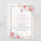 Elegant Floral Pink and Gold with Cross Baptism Invitation