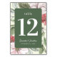 A wedding table number card featuring an elegant autumn floral background using the colors, blush pink, sage green, and dark rose. The design features a solid dark sage green box in the center of the card.