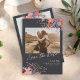 Elegant script calligraphy simple 2 photos wedding save the date with pretty boho spring summer floral watercolor illustration in purple, coral, pink, red and blue.