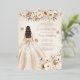 This is a beautiful quinceañera invitation design, perfect for celebrating the special milestone of a young girl's 15th birthday. The invitation features an elegant illustration of a young woman in a stunning ballgown, adorned with glittering accents and a graceful bow at the back, symbolizing the grandeur of the occasion. The soft, neutral color palette of champagne and cream, complemented by delicate floral arrangements and shimmering butterflies, adds a touch of sophistication and charm.