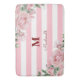 Elegant Floral Rose Striped Monogram Bath Mat