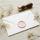 Before the wax hardens, gently and evenly press the wax seal stamp into the melted wax, ensuring it's centered.