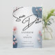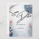 Announce your special day with timeless elegance. This Save the Date card features soft blush florals, modern blue accents, and graceful handwritten script for a romantic yet contemporary look. Perfect for weddings that blend classic charm with modern style, it creates a beautiful first impression for your guests. Ideal for printing or digital sharing, this design sets the tone for a refined and unforgettable celebration.