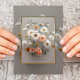 To enhance the overall allure, we've incorporated a subtle diagonal striped overlay, artfully placed outside the gold frame as a background layer. This detail adds a sense of depth and elegance, complementing the design flawlessly. The backdrop features a stunning array of beautiful wild flowers, with a dominant white color palette, symbolizing purity and the beginning of a new chapter in your lives.
