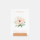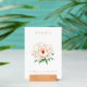 This is a delicate and elegant style image featuring a soft watercolor illustration of blooming peonies in shades of pale pink, surrounded by lush green leaves. The composition exudes a gentle and romantic ambiance, perfect for adding a touch of natural beauty to any event setting. Ideal for wedding table numbers or decorative elements that inspire warmth and sophistication.