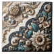 This stunning tile artwork features an elaborate floral pattern bursting with life. Intricately carved flowers and leaves intricately blend in a rich palette of colors, creating a mesmerizing focal point.