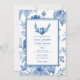 Elegant Floral Toile Periwinkle Blue Crest Wedding Invitation