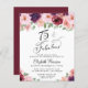 Elegant, chic and budget-friendly 75th birthday party invitation that features "75 & Fabulous" in a stylish script and watercolor bouquets of burgundy red, blush pink and purple florals with light sage greenery.