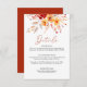 This elegant fall wedding details enclosure card showcases a vibrant watercolor bouquet of flowers, berries, and leaves in sunset tones of deep orange, peach, taupe, and terracotta, capturing a warm boho-rustic aesthetic. The rich autumn palette is paired with refined serif typography on a clean white background, blending natural charm with timeless sophistication. Designed to complement your stylish autumn wedding, this enclosure card is easy to personalize with reception, accommodation, and wedding website details directly in the Zazzle editor.