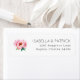 This is a minimalist style image featuring an elegant floral design with soft pink peonies and green leaves, paired with clean, modern typography. The address label reads "Isabella & Patrick" along with their charming Florida address. It exudes a sense of sophistication and romance, perfect for wedding stationery or personalized correspondence that adds a touch of natural beauty to any envelope.