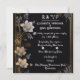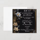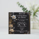This luxurious wedding invitation design features a sophisticated black background adorned with delicate floral arrangements. The intricate white, gray, and golden flowers elegantly frame the invitation, creating a refined and timeless esthetic. The golden border adds a touch of opulence, making it perfect for high-end wedding décor and invitation displays. Ideal for cross-selling wedding accessories, stationery, and décor elements, this elegant design serves as a versatile template for wedding-themed items. Its classic yet modern floral motifs provide a stunning backdrop for personalized text, enhancing both wedding invitations and event decorations.