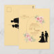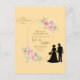 This customizable wedding invitation design features soft pink florals, a romantic couple silhouette, and luxurious typography – all set against a warm, creamy background. Perfect for announcing your big day with grace and class.