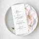 Add a refined touch to your wedding reception with this elegant minimalist botanical wedding menu card. Featuring delicate floral line illustrations, soft neutral tones, and romantic script typography, this menu design beautifully presents your wedding meal in a timeless and sophisticated style.