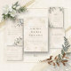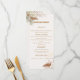 This elegant wedding menu card features soft white florals, lush green leaves, warm brown foliage, and subtle gold accents on a light beige watercolor background. Designed in a tall 4 × 9 inch format, this flat card is perfect for displaying reception dinner details at each guest’s place setting. Coordinated with our Earthy Floral Elegance Wedding Suite, this menu card adds a refined touch to rustic, botanical, or nature-inspired weddings.
