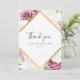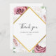 Elegant floral thank you card featuring a blush pink rose flowers with a gold effect geometric frame. From "Modern Floral and Geometric" collection, this gorgeous and sophisticated layout shows your thank you details in a stylish script and modern typography with a rich bouquet on a white background. Saying thanks to all who made it to the ceremony will leave a lasting memory