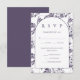Simple and elegant wedding rsvp card features a beautiful violet color botanical pattern on the back, and classic bold rsvp typography on the white front of the card. Meal choice and response date are included in the editable text.