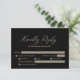 A stylish black floral wedding RSVP response card to include with your invitation for your guests to confirm their attendance, menu preference, and dietary requirements, if any, on your special day.