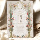 Add an enchanting touch to your wedding reception with our Elegant Floral Wedding Table Number Card. The design features a lush column of flowers in delicate shades of blush, coral, and sage, framed by an ornate botanical arch with a classic monogram at the top. Each card is graced with a bold table number, accompanied by the names of guests assigned to the table, set against a rich ivory background. Golden accents and the artful arrangement of the blooms create a vintage garden atmosphere, perfect for guiding your guests to their seats with style and sophistication.