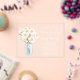 The simplicity of a bouquet of white daisies in a mason jar, aided by the white script font, creates an elegant yet minimalistic wedding design. The text is fully editable.