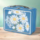 Elegant Floral White Daisies on Blue Metal Lunch Box