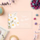 The simplicity of a bouquet of white daisies, aided by the white script font, creates an elegant yet minimalistic wedding design. The text is fully editable.