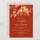 This elegant floral rust orange fall wedding invitation featuring a vibrant and natural bouquet of watercolor wildflowers, leaves and berries in sunset hues of deep oranges, peaches and taupes, create a romantic boho elegance to complement your stylish autumn wedding. The beautiful warm palette of hand painted florals is perfectly paired with elegant serif text on a rich terracotta orange background to create a natural yet sophisticated look. Perfect for styling your special day with an elegant boho fall charm.