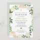 Elegant Floral Wreath Baptism Baby Girl Green Gold Invitation