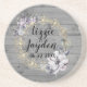 On rustic grey wood is an elegant chic gold flourish combined with a lavender floral wreath where you can personalize it creating romantic farmhouse elegance