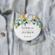Elegant floral yellow and blue watercolor wedding button