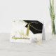 Stylish graduation greeting card, done in a white, gray, and gold tone flourish pattern, with graphics of a black graduate's mortarboard cap, with a gold tone tassel, in the upper right corner. Gold tone graphic script text reads Congratulations, on the front. Black text greeting, on the inside, is ready to personalize to read what you want. Pretty card to your favorite graduating girl.