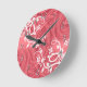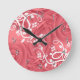 Elegant Flourishes Floral Red Shadow Pattern Round Clock