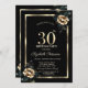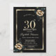 Elegant Flower Gold Frame Black 30th Birthday Invitation