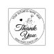 This "Thank You" stamp features a hand with a flower, custom business name and thank you message.